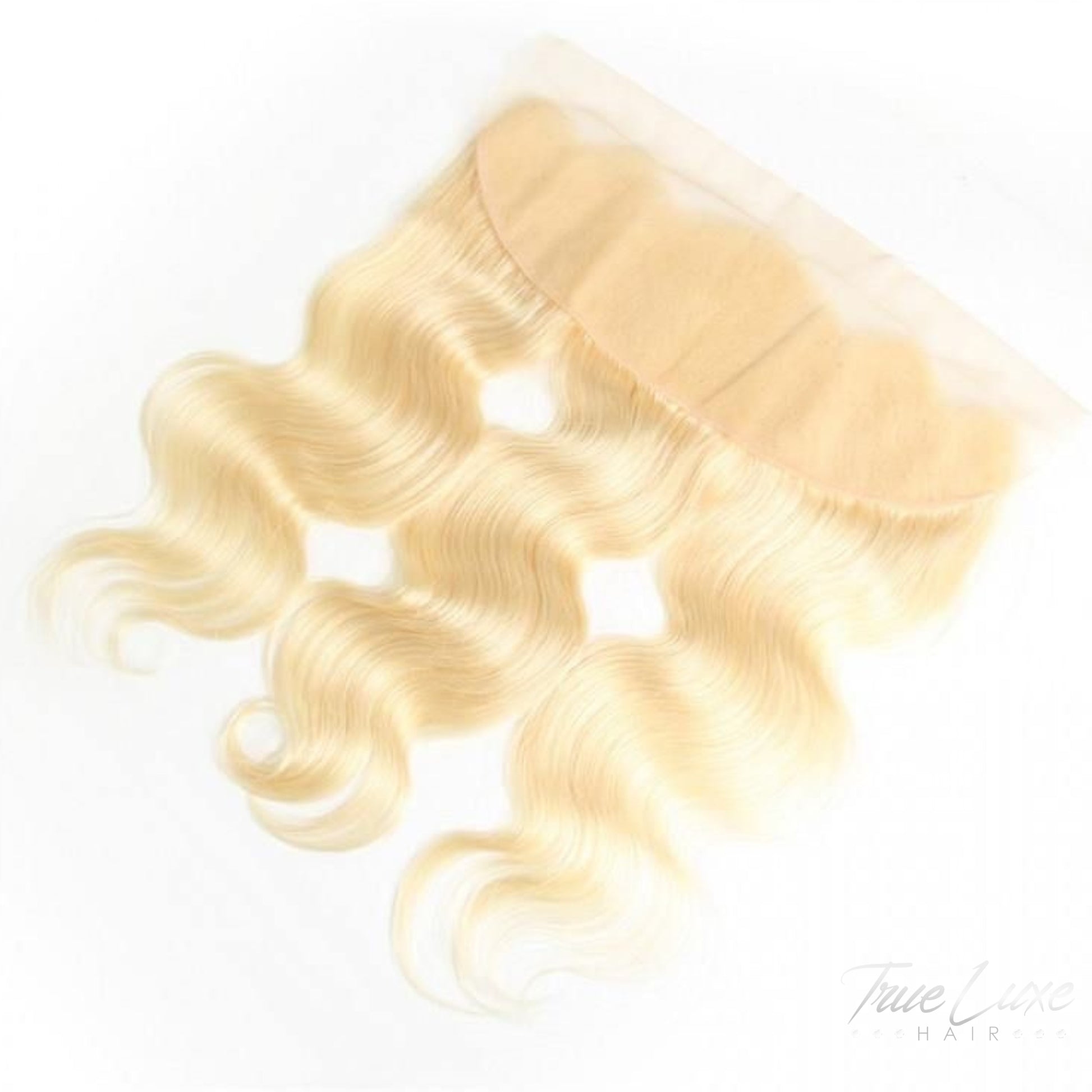 Our 613 lace frontal 13x6 is a light blonde (platinum) hairpiece that covers the entire front hairline, measuring 13 inches wide and 6 inches deep. Made with HD lace, using our virgin human hair, it allows for versatile parting and styling options, mimicking a natural hairline. It’s popular for its ability to be dyed and its natural, seamless appearance when installed in wigs or sew-ins.